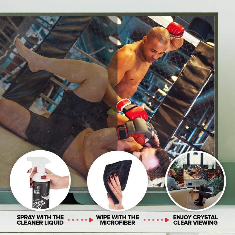 - Spotless Screens: Keep desktop, laptop, iPad, & TV screens sparkling and free from messy fingerprints, dirt & dust using our all-in-one screen cleaner spray kit; the best computer screen cleaner to keep your electronics looking their best