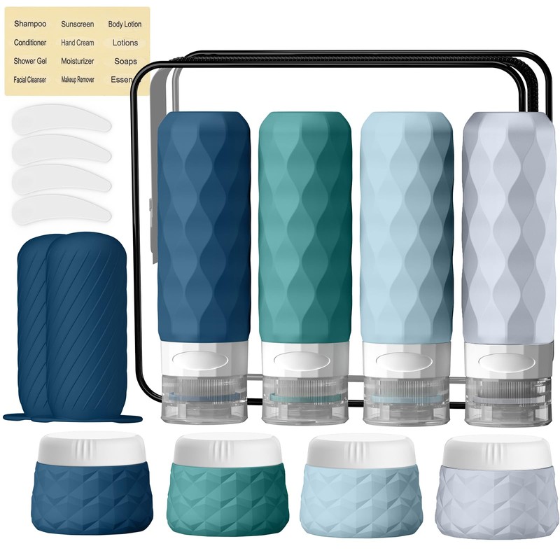 - 【BPA FREE SILICONE】Travel Size Toiletries Containers Set includes 4 silicone travel bottles, 4 travel silicone cream jars, and 2 silicone bottle covers made from BPA-free premium silicone, meaning your items won't be contaminated by toxins. Use your daily personal care items anywhere