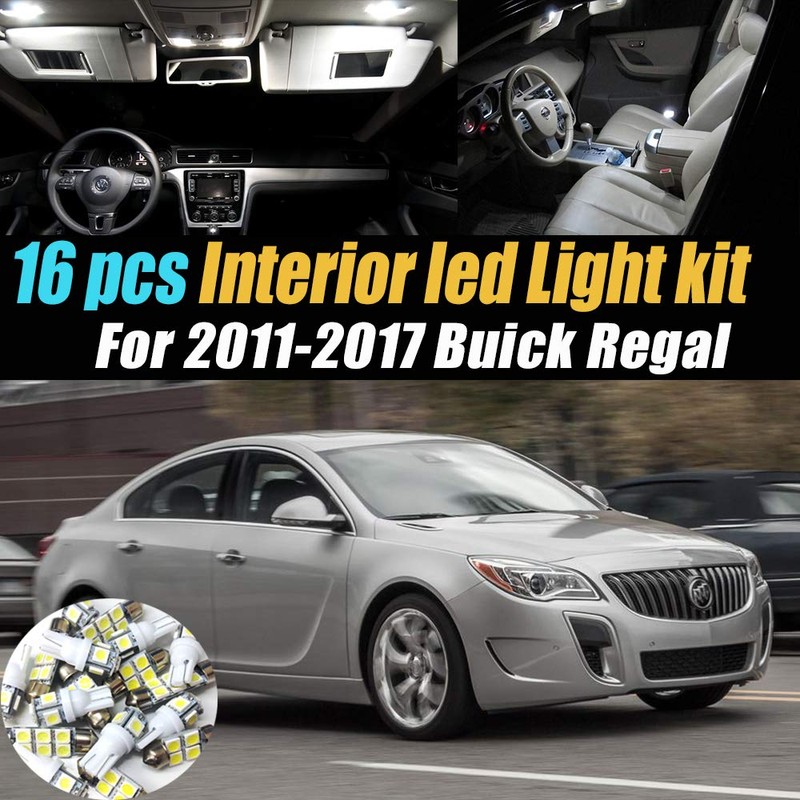 Name: 16Pc Super White 6000k Car Interior LED Light Bulb Kit Pack Compatible with 2011-2017 Buick Regal