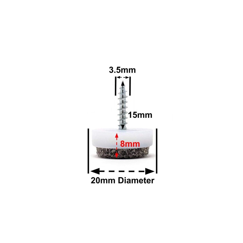 16pcs - 20mm Felt Furniture Pads (Made in Germany) Screw-On Chair Feet Gliders (White, Free 2mm Drill Bit)
