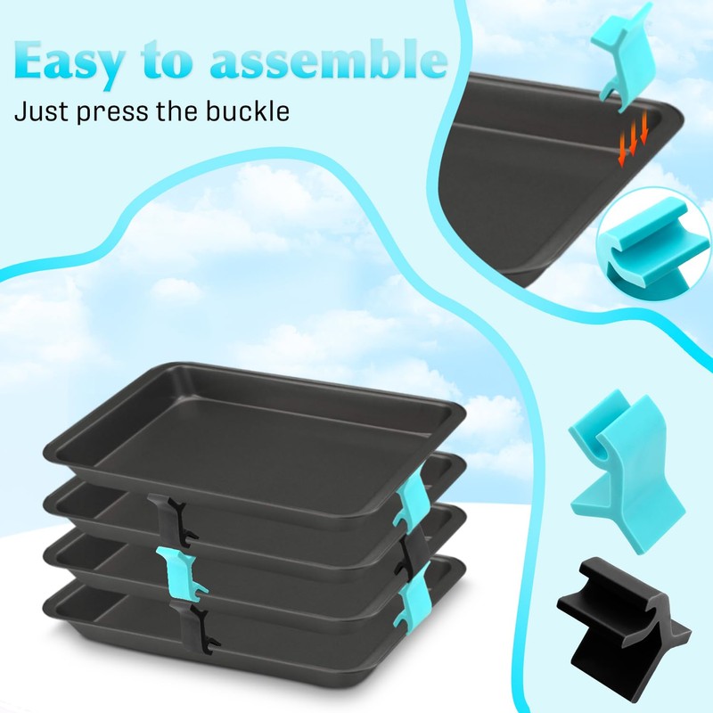 - Reusable and eco-friendly options: Made from high-quality, durable food-grade materials, this sheet pan stacker clips not only reduces the waste of disposable packaging materials, but also saves you money through long-term use.
