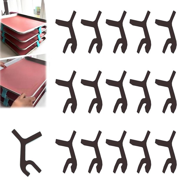 - 【Multi-Purpose】 16PCS set of space-saving sheet pan stacking clips crafted. Enhance your baking experience with our baking tray stacker, which stores and cools multiple trays of cookies, cakes, pastries and more in a vertical space-saving design.