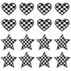 16Pcs Black&White Checkered Heart&Star Western Iron on Embroidered Set, Contains 8 Heart Patches and 8 Star Patches, Black&White Embroidered Sew on Patch Applique Embellishments for Jeans, Hat