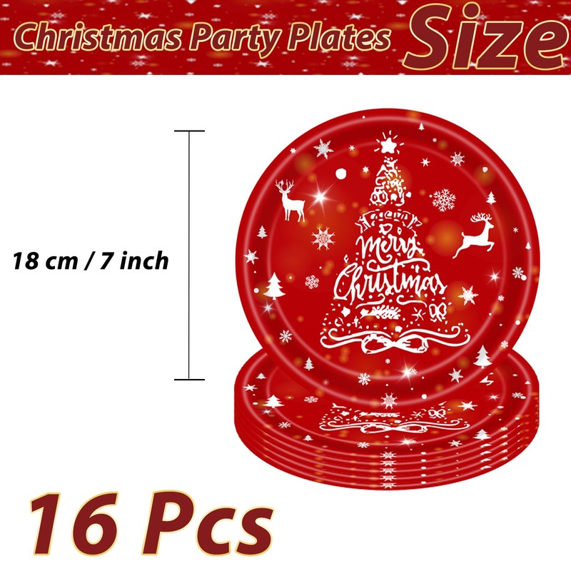 16PCS Christmas Paper Plates 18cm,Disposable Paper Plates 7 inch Red Xmas Tree Paper Round Dinner Plates Tableware Party Plates for Birthday,BBQs,Christmas,Picnic,Kids Shower Party Plates Supplies