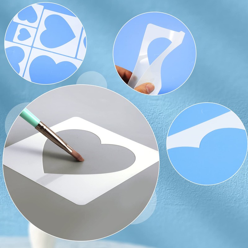 - Easy to Use: Put this painting stencil on a flat and clean surface, then use a paintbrush or pen to draw patterns on the object you want to decorate, for example, you can use them to draw a perfect heart on your bedroom wall!