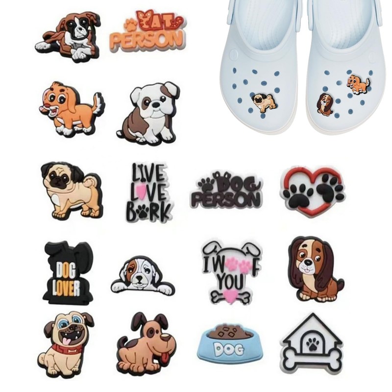 - 【Vibrant Dog Croc Ornaments】This set includes 16 uniquely designed, colorful dog croc charms, featuring various popular characters. Brighten your footwear with these adorable shoe decorations for an instantly personalized touch.