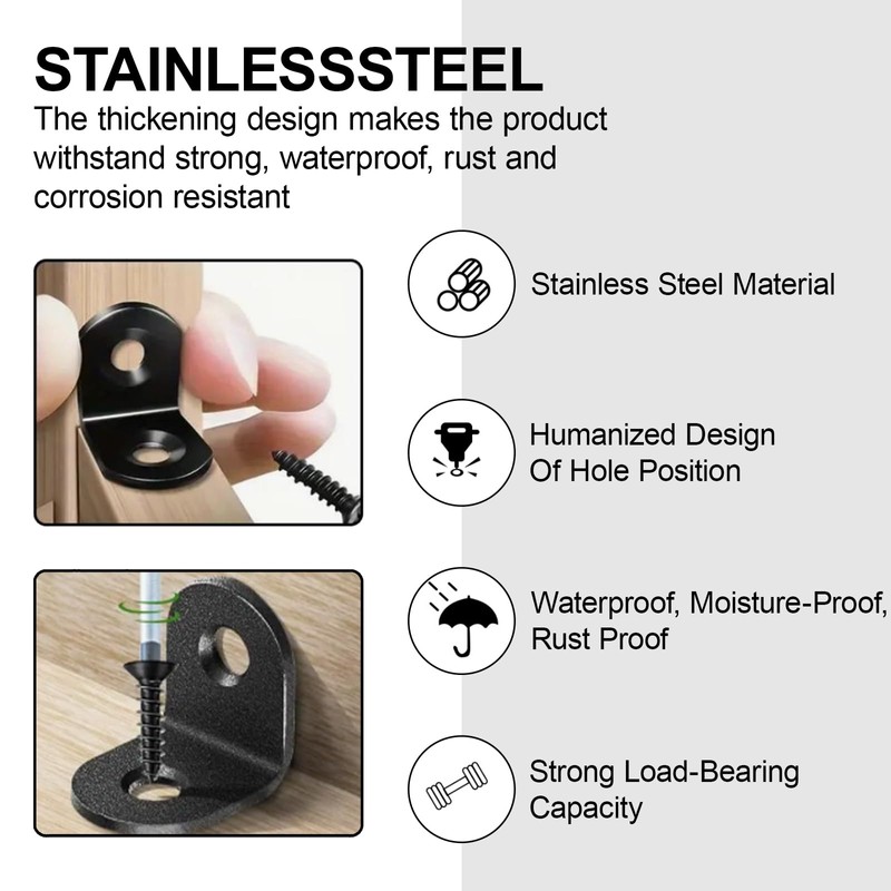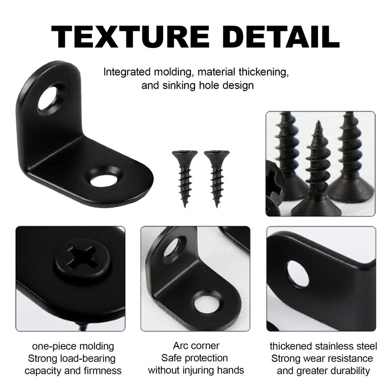 - Easy to Use- L brackets are easy to install, simply use a drill to drive the equipped screws into wood or other surfaces, the holes of our brackets are countersunk, no protrusion after installation, making them aesthetic and neat