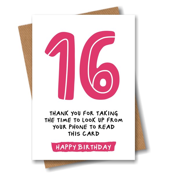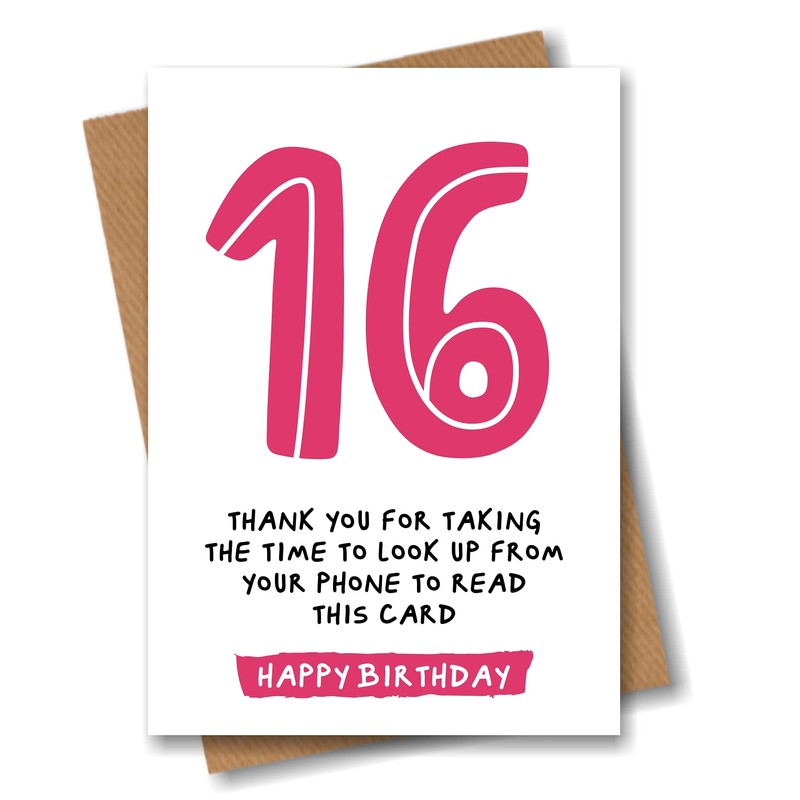 16th Birthday Card - Funny Joke for 16 Year Old - Pink