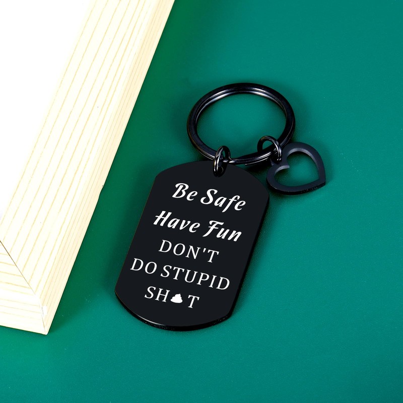 - Delicate Design and Durable Quality: The funny be safe keychain is made of high-quality stainless steel, is high-polished without burrs, waterproof, sweat-proof, and won't rust or tarnish. The keychain is beautiful and easily carried around with a hook. The keychain is packed in our well-designed jewelry box. It is very convenient to give away the product and packaging on at son's birthday or as stocking stuffers for kids. It makes the perfect choice for putting a smile on their face.