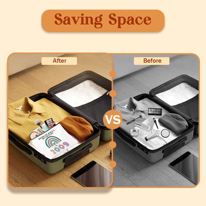 - Spacious & Functional: With dimensions of 9" W x 7" H, these bags boast double-sided printing and ample space for cosmetics, ideal for travel or everyday use.