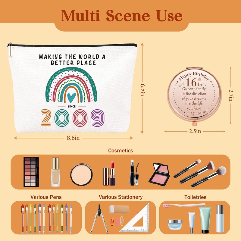 16th Birthday Gifts for Girls | Inspirational 16th Birthday Gifts for Her | Small Pencile Bag Toiletry Bag Cosmetic Bags | Unique 16th Birthday Gifts for Friend Sister Bestie (2009)(Brush not include)