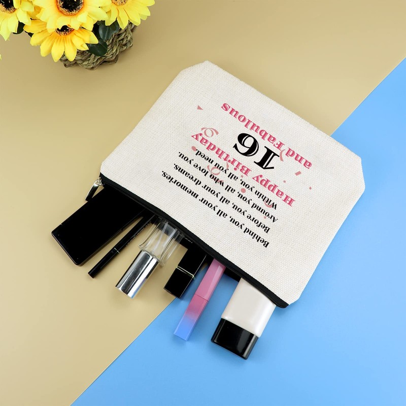 - Gift for 16 Year Old Girls:Behind you, all your memories. Before you, all your dreams. Around you, all who love you.Within you, all you need ,Happy Birthday ,16 and Fabulous.If you are looking for birthday presents for 16-year-old girl, then our 16-year-old cosmetic bag is your good choice.