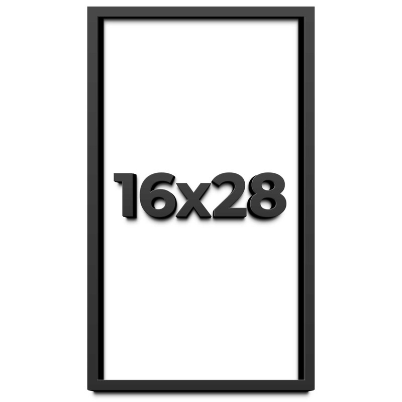 - Black Wood Shadow Box Frame Interior dimensions of 16x28 inches with 3/4" of usable depth. UV resistant, frame-grade acrylic protective front. Acid-free white backing board and interior walls. Hanging hardware included for vertical or horizontal display.