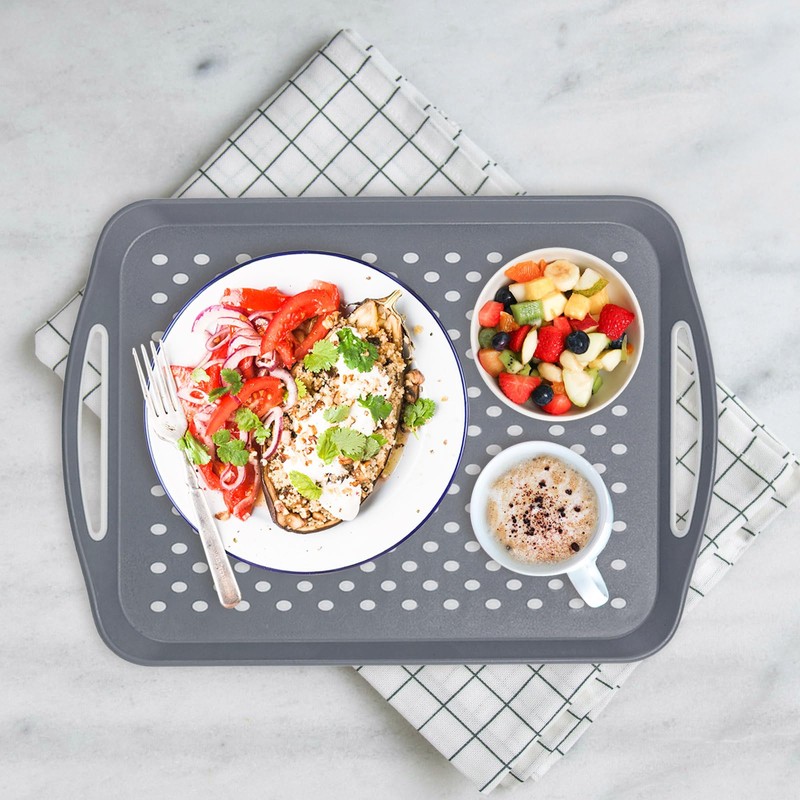 17.7" x 12.5" Anti-Slip Serving Trays with Handles, 3 Pcs X-Large Rectangular Food Serving Tray for Lap, Reusable and Durable, Grey