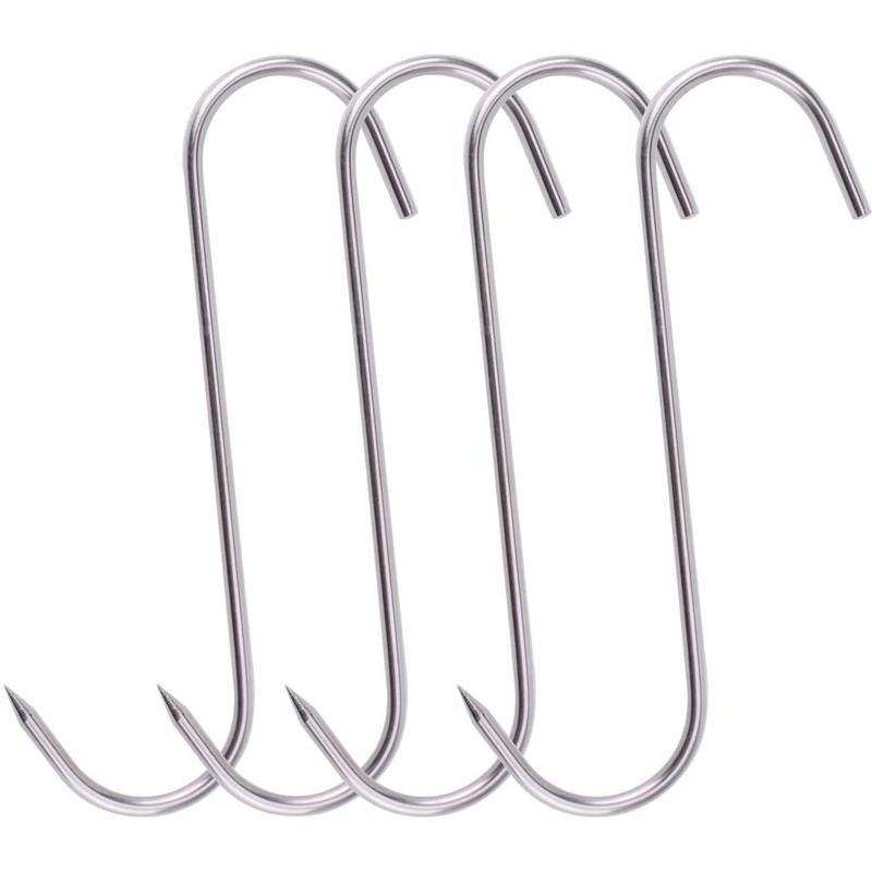 17.78 cm S-Hook Meat Hook High Performance Stainless Steel Meat Processing Butcher Hook Hanging Drying BBQ Grill Cooking Metal Meat Hook for Butchers, Farmers, Hunters (4 Pack-4 mm) (17.78 cm)