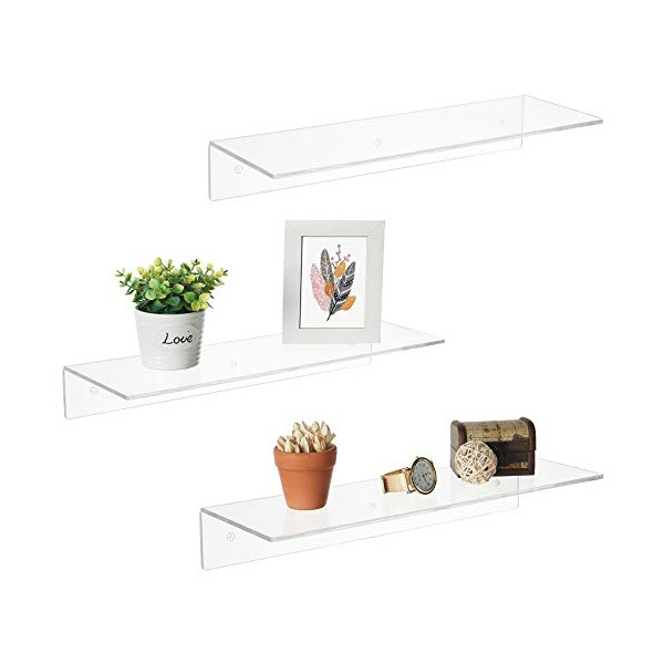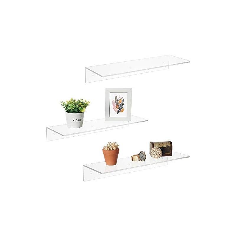 17 Inch Clear Acrylic Floating Shelves, Wall Mounted Modern Display Racks, Set of 3
