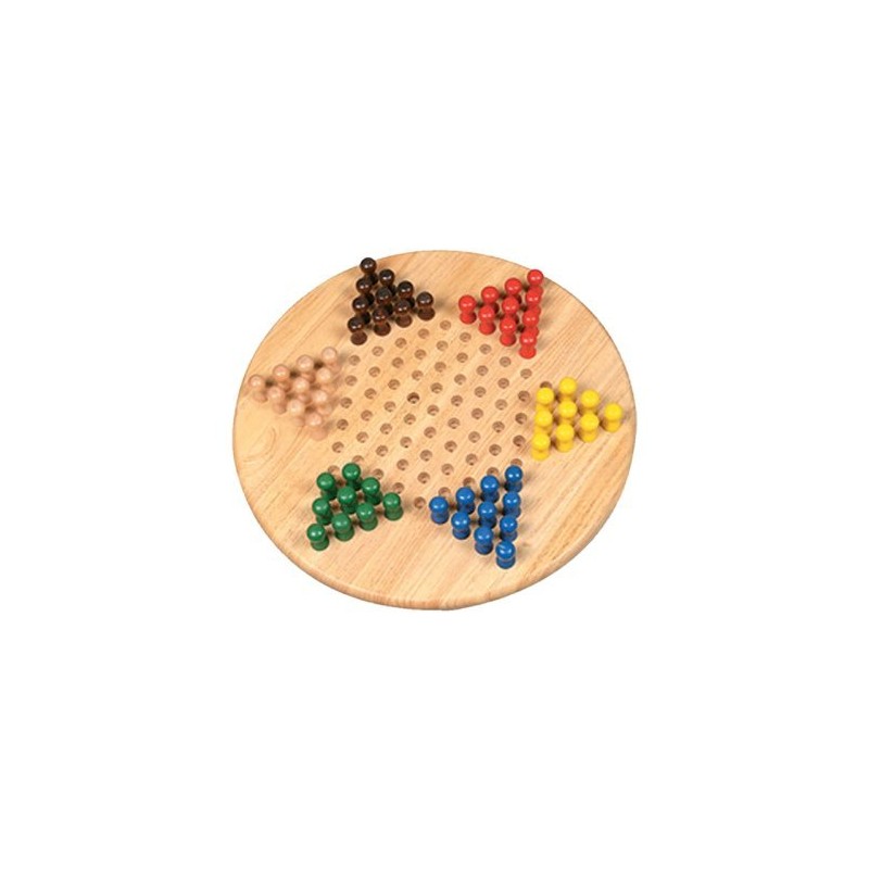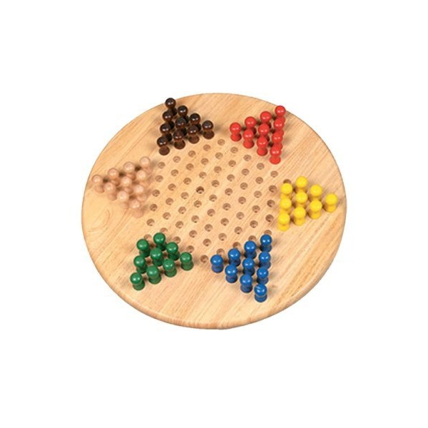 From the Manufacturer Deluxe Chinese Checkers Game is solid light tan wood board. Pegs are 2" high and 3/8" in diameter at base of peg. Pegs are very easy to handle and stay in place if table is bumped. Holes in board are 1/2" diameter. Pegs fit holes loosely. The 121 holes in game board resemble a star. Product Description Deluxe Chinese Checkers Game is solid light tan grained wood board 1 inch thick board. Pegs are 2 inches high and 3/8 inch in diameter at base of peg. Pegs are very easy to handle and stay in place if table is bumped. Holes in board are 1/2 inch diameter. Pegs fit holes loosely. The 121 holes in game board resemble a star. Packaged in a plain cardboard box. Deluxe Chinese Checkers Game is solid light tan wood board. Pegs are 2" high and 3/8" in diameter at base of peg. Pegs are very easy to handle and stay in place if table is bumped. Holes in board are 1/2" diameter. Pegs fit holes loosely. The 121 holes in game board resemble a star.