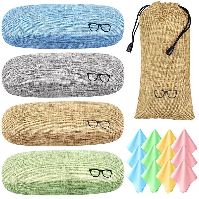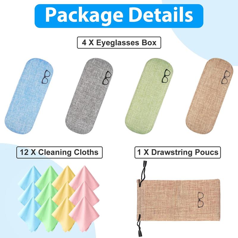 17-Piece Hard Case Set: You will receive 4 hard-shell cases, 1 eyeglass drawstring bag, and 12 microfiber cleaning cloths.