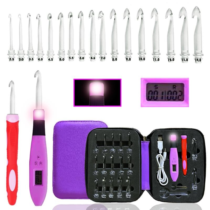 17 Size Counting Crochet Hooks Set, Light Up Crochet Hooks for Stitch & Row Counter - Color: purple17