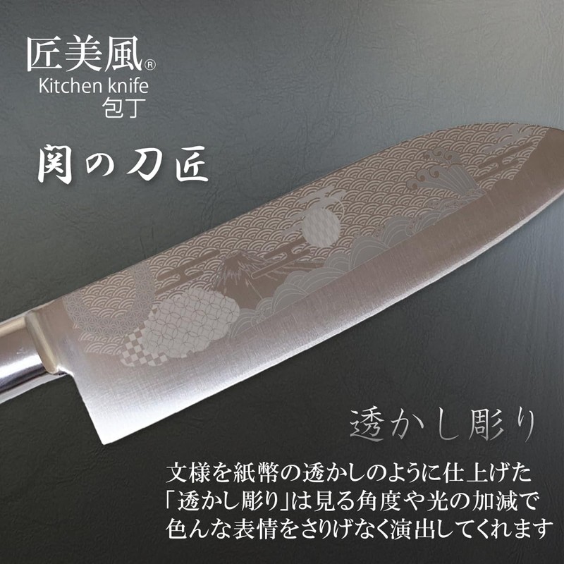 匠美風 多目的 包丁 透かし彫り 富士山 三徳包丁 170mm 刃渡り 170mm モリブデン鋼 AUS-8 日本製