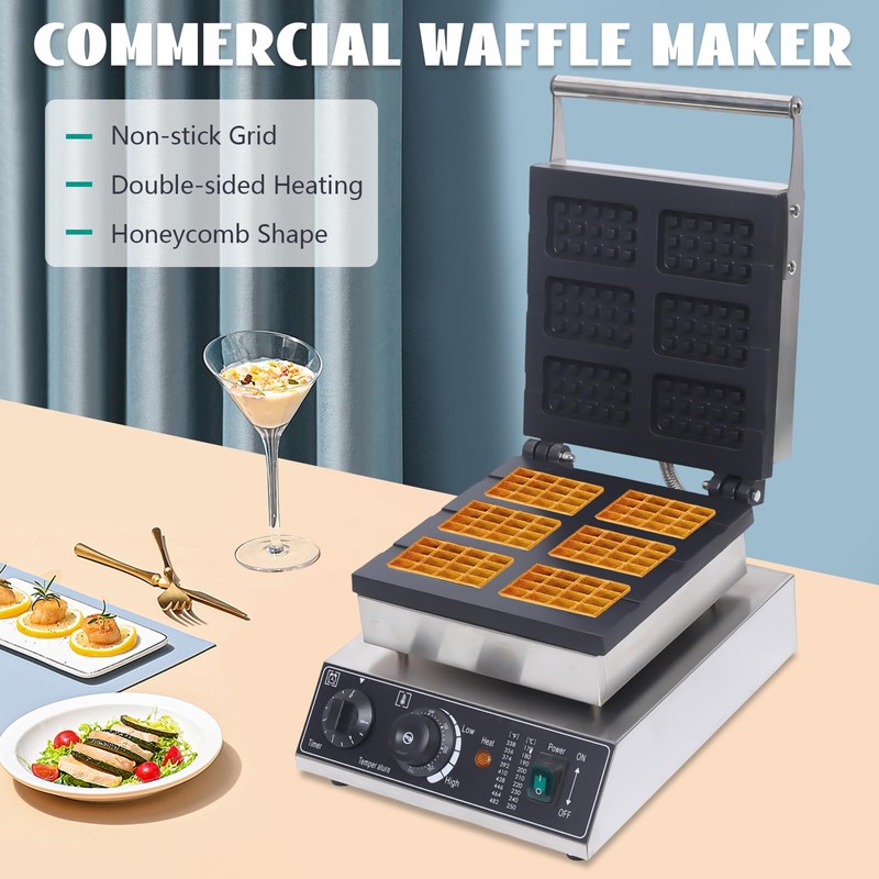 - 【Fast & Efficient 1750W Heating】- With 1750W total power, this professional waffle iron heats up quickly, baking six golden waffles in minutes. Perfect for high-demand settings like cafes, bakeries, and food trucks, it reduces wait times while maintaining consistent quality.