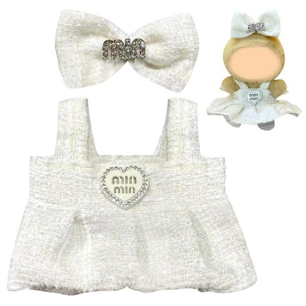 - Adorable Mini Doll Clothes Set: This charming Doll Clothes Set includes a simple white suspender dress and a matching bow hairband, specially designed to add a touch of fashion and joy to your 17cm plush doll’s wardrobe.