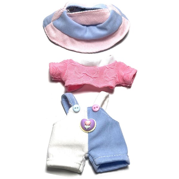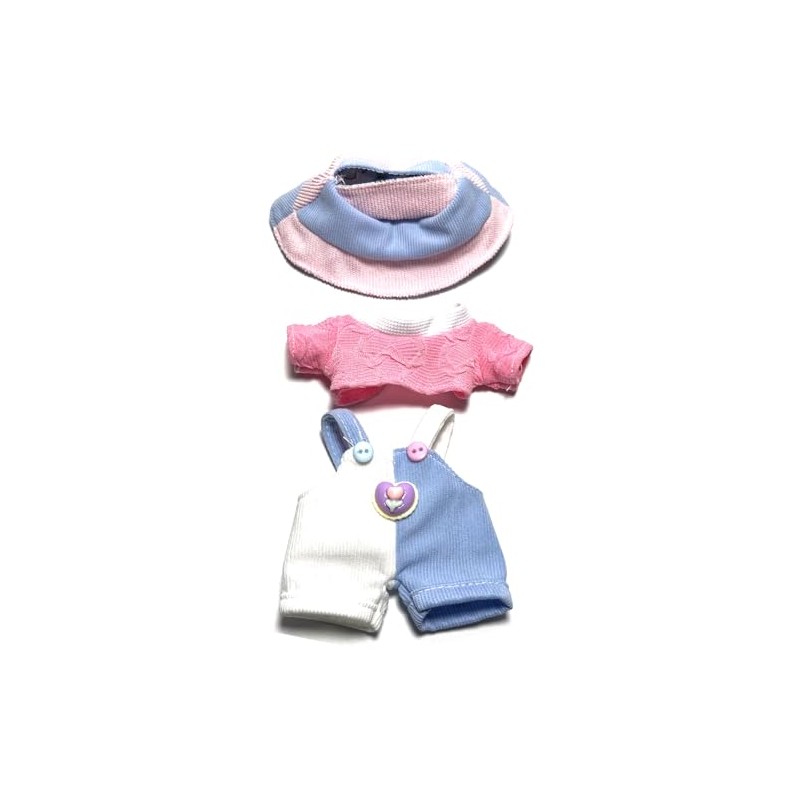 17cm Doll Clothing Set, Cotton-Polyester Outfit with Hat, Tshirt & Overalls for 17cm Collectible Dolls