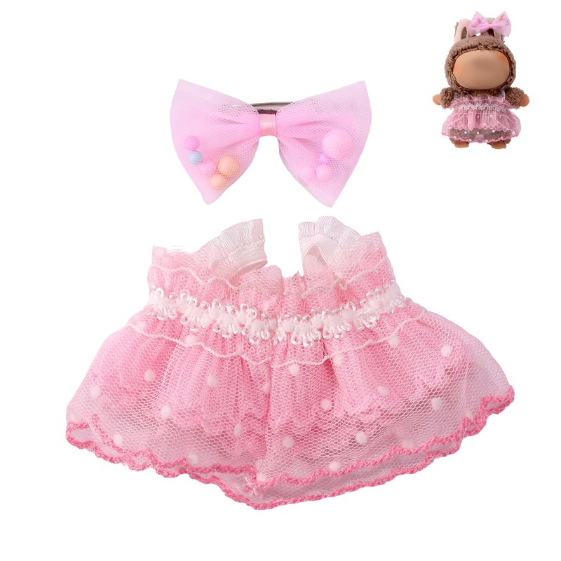 - Product List: This stylish pink dress set with matching bow clip brings a sweet and kawaii look to your 17cm plush doll, perfect for adding charm and personality. (Note: Doll not included.)