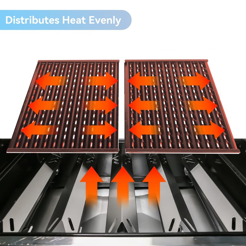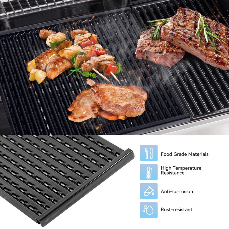 - 【Extremely Durable】Made of durable porcelain coated cast iron, the grates distribute heat evenly across the entire grate surface, maintaining consistent grilling temperatures and enhancing original flavor of food. It also has better bearing capacity when compared to other grill grates