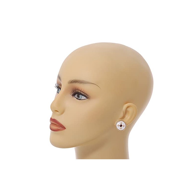 17mm Gold Tone White/Red Enamel Faux Pearl Button Clip On Earrings