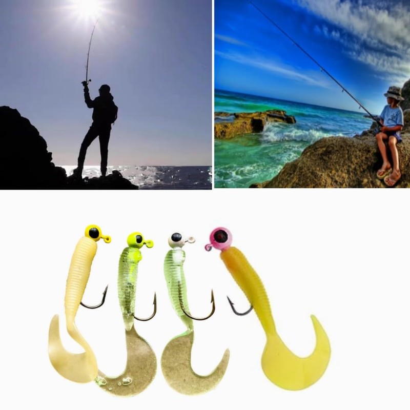 - Colorful Soft Baits: The body of the bait is soft, and the tail of the bait is curled & flat, which can swing greatly, Worm shapes create vivid swimming actions in water to attract fish to bite.