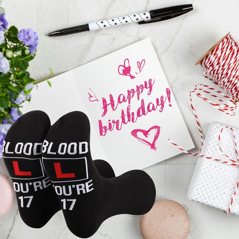 17th Birthday Driving Gift 17 Year Old Gift for Her Him Hello 17 Bloody L You're 17 Socks L Plate Socks (L, Bloody L CA)