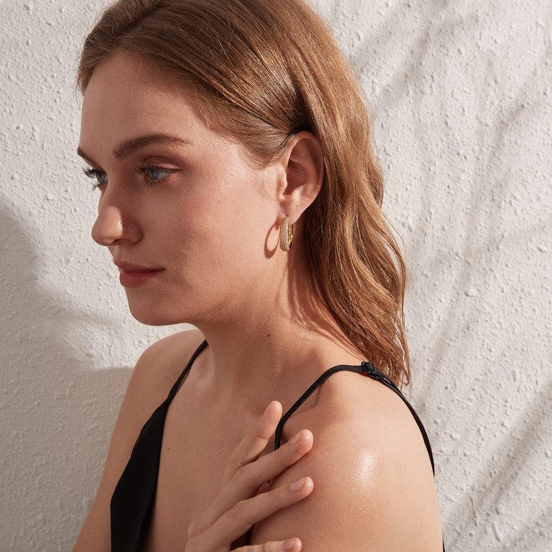 - 925 sterling silver hoop earrings, stamped 925 on hoop earrings. High quality 5A + cubic zirconia. Shiny and looks like real luxurious diamonds.