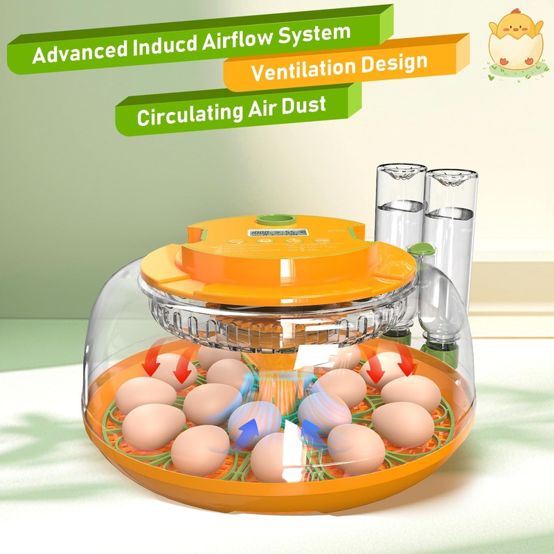 - Upgraded Smart Egg Incubator: Precise temp & humidity display. 2-in-1 humidity control with adjustable vent for flexible humidity management. Built-in fan ensures stable airflow for optimal hatching. (If the temperature and humidity deviate from the optimal range, the incubator will automatically sound an alarm, which can be released by pressing any key).