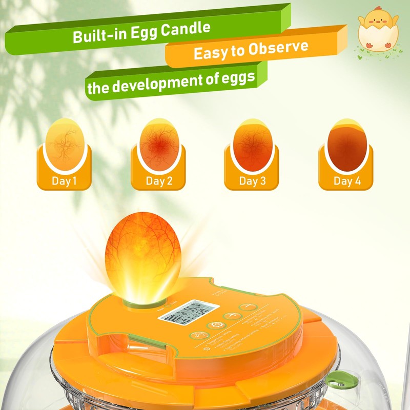 - 360° Viewing & Egg Candler : Our chicken incubator features a 360° high-transparency materials lid for non-intrusive observation. Equipped with a visual egg candler lighting on top of the egg incubator, convenient to observe the hatching progress and checking the egg's condition.