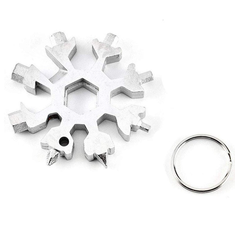 18-in-1 Multitool Stainless Steel Bicycle Multifunctional Tool, Snowflake Multi Tool Key Ring Bottle Opener Ring Wrench Octagonal Key Tools (White)