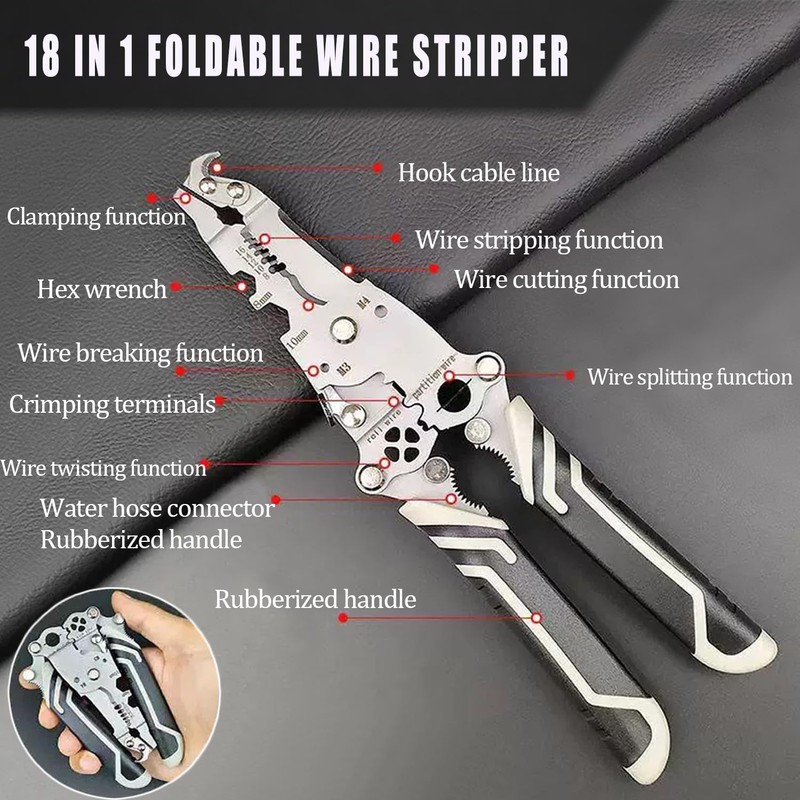 - Versatile 18-in-1 Wire Stripper:This 18-in-1 multifunctional folding pliers combines 18 essential functions, including wire stripping, cutting, and crimping, making it a must-have tool for electricians and DIY enthusiasts. Its all-in-one design simplifies complex tasks.
