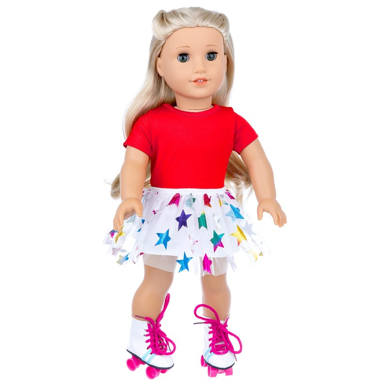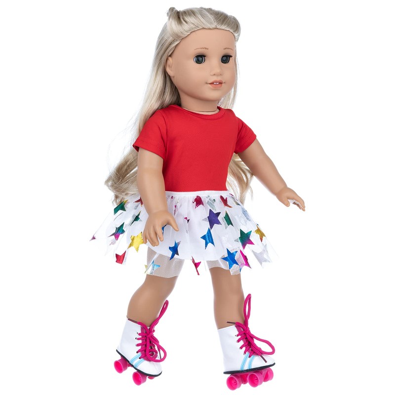- Package Includes: 1 skirt, 1 sticker, 1 pair of skating shoes, 1 pair of socks, 1 mobile phone, 2 wrist guards, 1 pink hair clip, 1 set of headband. (NOTICE: DOLL is Not INCLUDED)