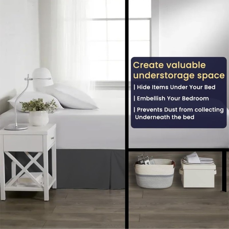 - Enhances Bedroom Decor: A bedskirt adds a stylish finishing touch to your bedroom, covering the area beneath the bed and concealing unsightly storage or dust while complementing your overall decor. Elevate the look of your bed with our 18 inch bed skirt. Whether it's for a dorm room, adjustable bed, daybed, or any other, our bedskirt adds a touch of elegance and charm.