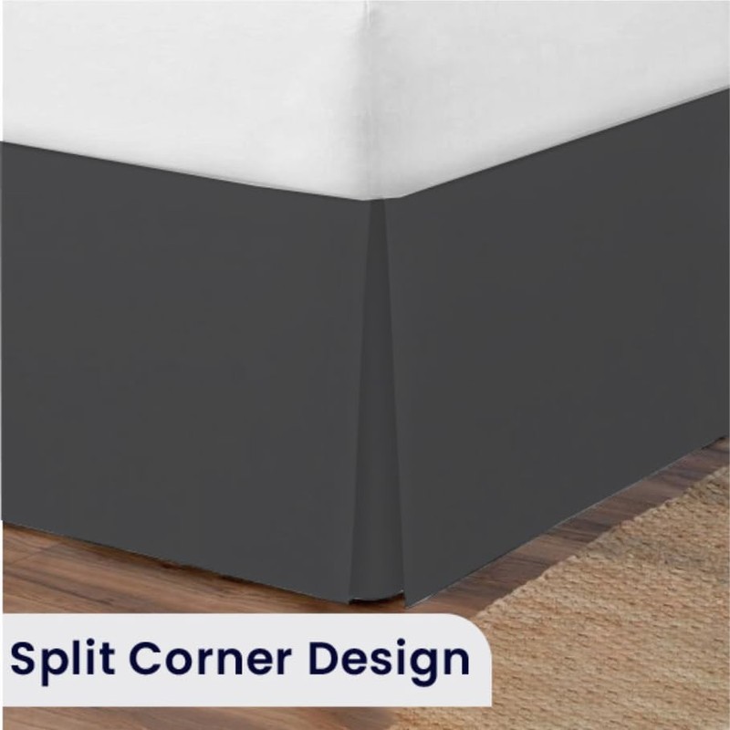 18 Inch Drop Bed Skirt King Size with Platform to Stay in Place Elegant Pleated Design with Split Corners Wrinkle Resistant Fabric for Modern and Stylish Look - Dark Grey