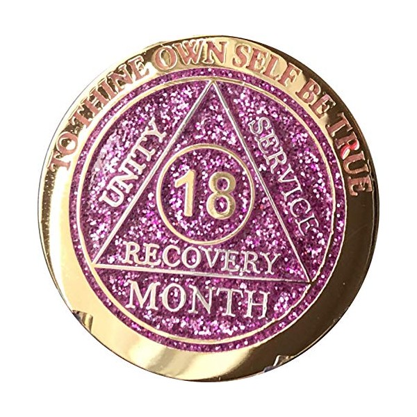 - 18 Month AA Medallion Reflex Pink Glitter Sobriety Chip