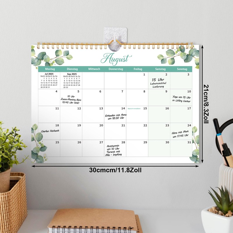 - Metal coil binding: this monthly calendar 2025 2026 is bound with metal double spiral coils. You can easily flip the pages 360 degrees without the pages falling apart easily, and you can also easily tear off the old pages. The family planner 2025 2026 can be hung stably on the wall, so you can check it at any time.