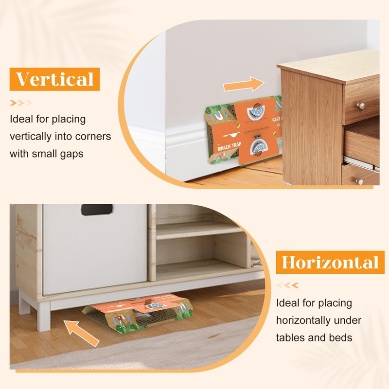- Multi-scene to Set: Cockroach killer indoor home are designed with dual buckle and multiple entrances, allowing to adjust the height of the cockroach entrances to suit the situation. Sticky trap’s high buckle is suitable for placing in corner of wall, under the water pipe, under the bed or other wide positions. Sticky pads for vermin’s low buckle is more suitable for a more narrow position like under the refrigerator or under the cabinet.