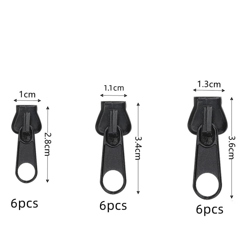 - ✔ Sizes: The replacement zips are available in three sizes: Large: 1.3 x 3.6 x 1.1 cm, Medium: 1.1 x 3.4 x 1 cm, Small: 1 x 2.8 x 0.85 cm. 6 pieces per size to meet your daily needs for repairs and replacement.