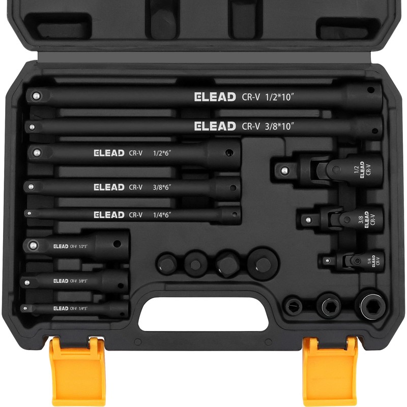 - VERSATILE SET - This impact socket extension set includes a complete range of 1/4", 3/8", and 1/2" drive tools, perfect for mechanics, DIY enthusiasts, and professionals working on tight spaces or awkward angles.