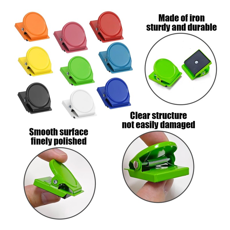 - 【Strong Magnetic Suction】These Metal Clips Are Equipped With Strong Magnetic Suction Design, Which Can Be Firmly Fixed To Metal Surfaces, Such As White Boards Or Refrigerators, And Can Be Easily Removed And Repositioned After Use, And Are Not Easy To Slide Or Fall, Providing A Stable Fixing Effect.