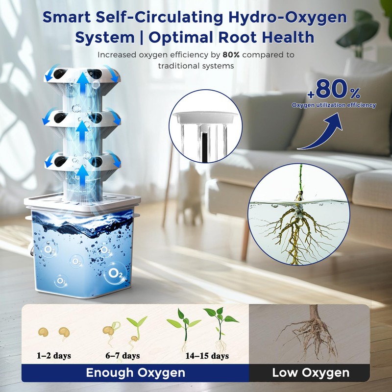 - Efficient hydroponic growing system: hydroponic growing system adopts advanced hydroponic technology, and the nutrients go directly to the root system, and the plant growth rate is 60% faster than that of soil planting.The 18-hole vertical design is suitable for cultivating green leafy vegetables such as lettuce, spinach, basil and small fruits such as strawberries, and the first crop can be harvested in about 30 days.Enjoy fresh ingredients all year round.