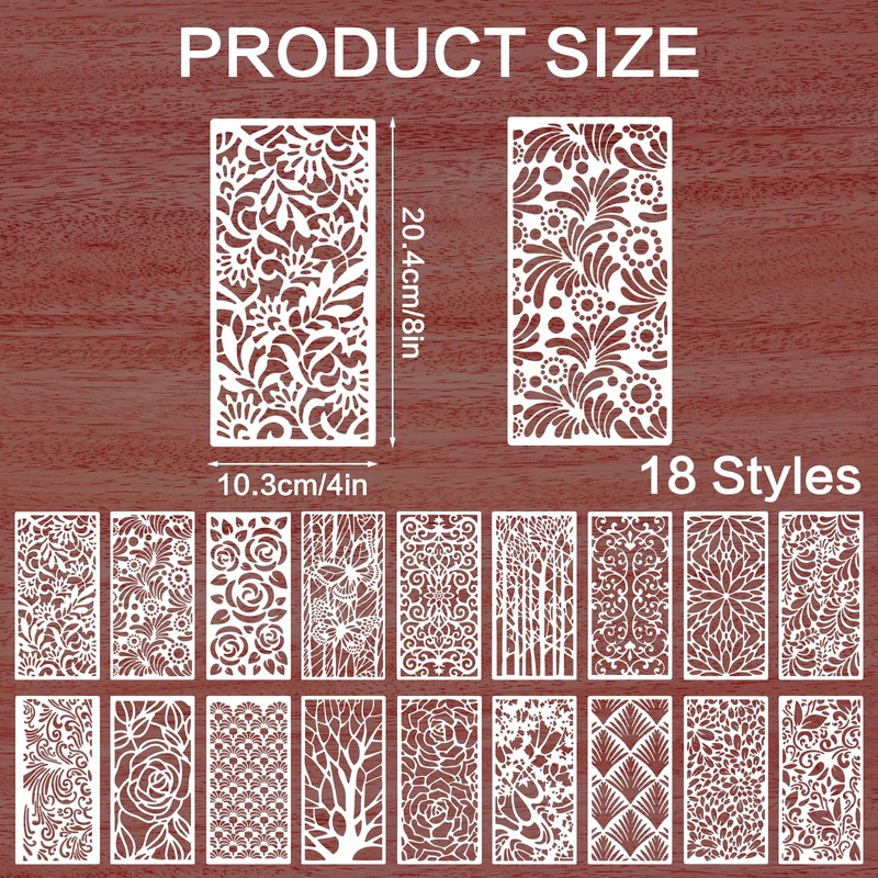 - 【Breite Anwendung】: Perfekt für Schrank Kommode Tisch Grenze Kuchen Tür Matte Dekoration, diese Schablonen können auf einer Vielzahl von Oberflächen verwendet werden, einschließlich Wand, Papier, Holz, Leinwand, Stoff, Glas, Boden, Metall und mehr Sie mögen, und geeignet für die Dekoration von Wandbildern, Geschenkkarten, Scrapbooks, Fotoalben, Umschläge, Kleidung, Türen, Fenster, Schreibtische, Böden, hölzerne Tags, Hemd, Keks, Kuchen und mehr.