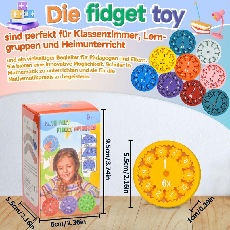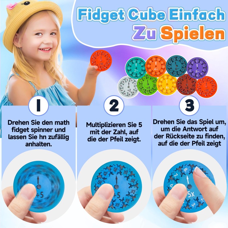 - PERFEKT FÜR UNTERWEGS LERNEN: Mit einer Größe von 5,5 cm x 5,5 cm können Sie es überallhin mitnehmen! Das lebendige Design des Lernspielzeug Fidgetspinner fesselt Ihre Aufmerksamkeit, während seine robuste Konstruktion den täglichen Gebrauch erleichtert. Ideal zum Üben von Multiplikationstabellen oder zum Verbessern der Additionsfähigkeiten.