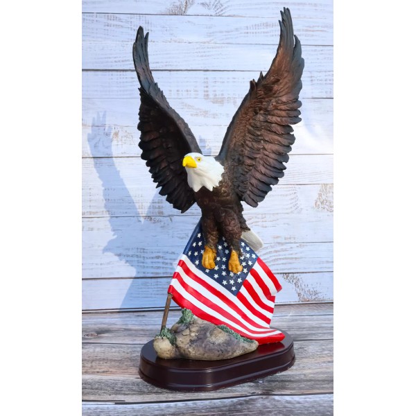 18" Tall Large Patriotic Bald Eagle Clutching On American Flag Figurine